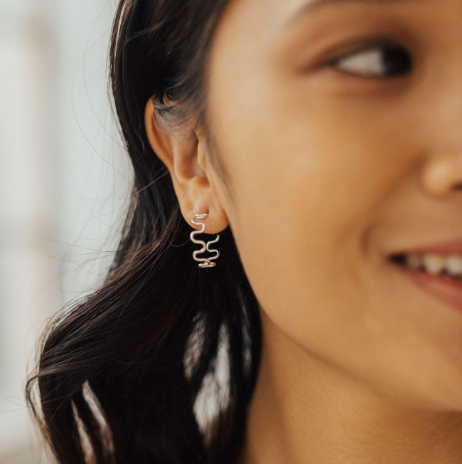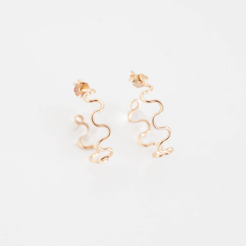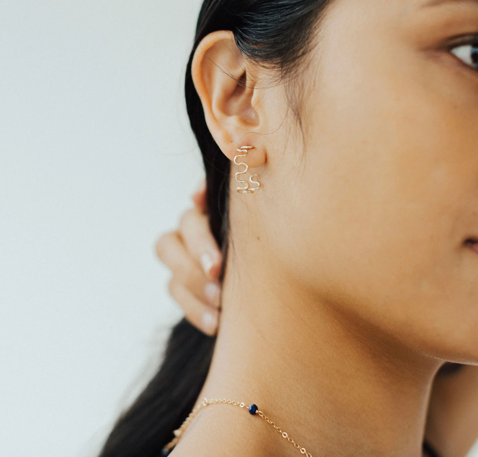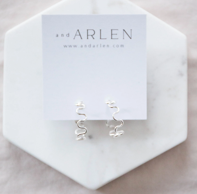 These fun hoops are inspired by And Arlen's popular Aurora Ring! Made with waterproof wire that's been hand-shaped to form the characteristic squiggles, the Aurora Hoops are unique and guaranteed to get compliments.