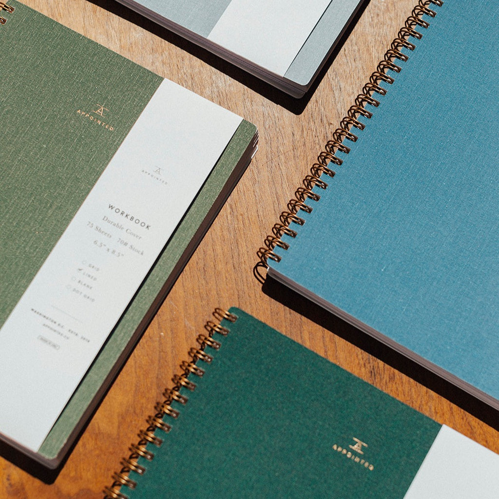 Appointed's signature notebook — the classic keeper of everyday things: records, thoughts, drawings, personal histories — because we know everyone has their preference.
