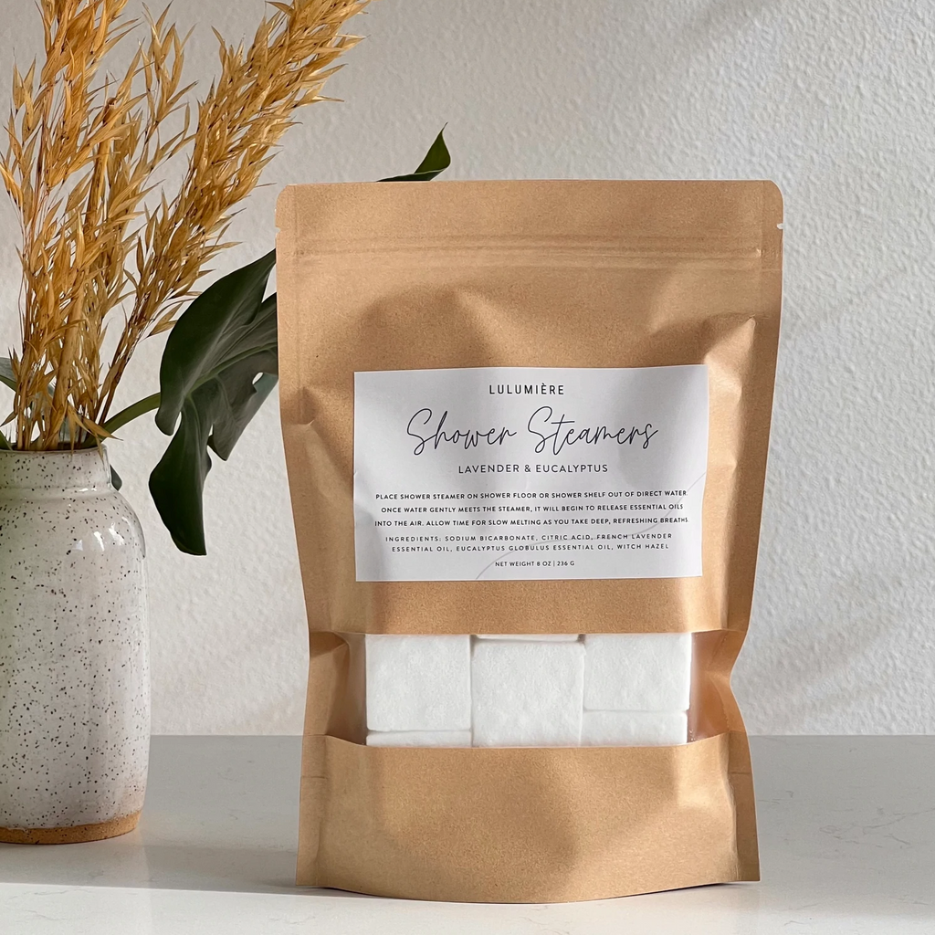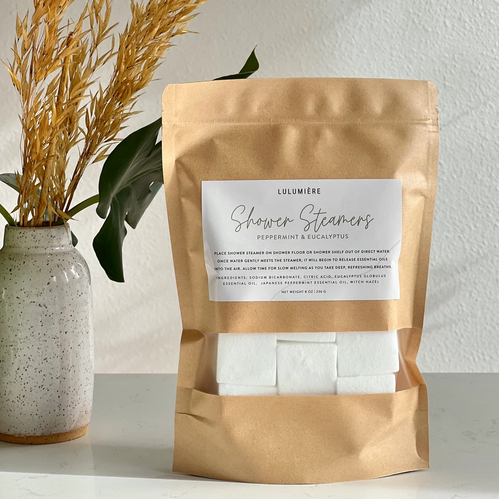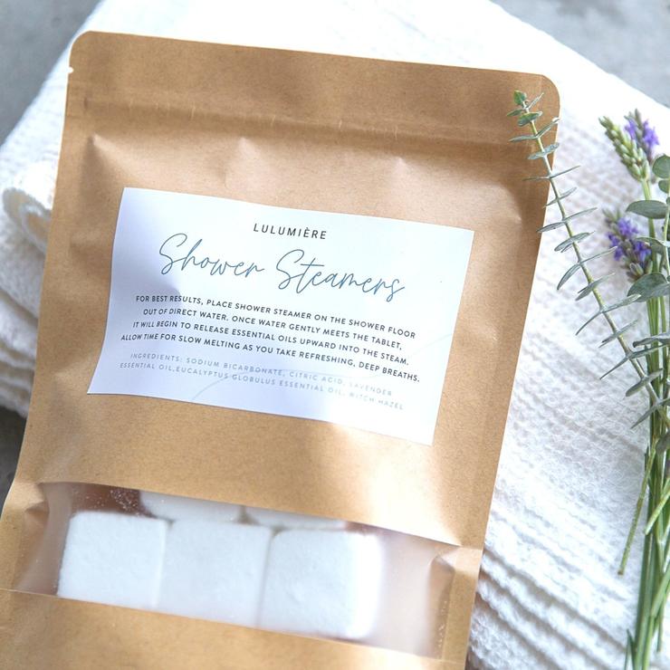 LULUMIÈRE Shower Steamers turn everyday showers into an refreshing spa experience. Think of them as bath bombs, but for shower people. Each tablet is made generously with 100% therapeutic grade essential oils for an organic scent you can feel good about. This season try showering with slightly cooler water than usual for an extra cleansing, refreshing, spa-like experience.