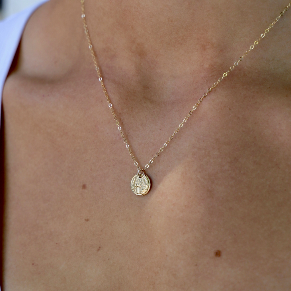 This petite coin necklace is perfect for adding subtle style and charm to any look. Crafted from an 18" chain and finished with a single petite coin, it’s a simple yet elegant way to spice up any wardrobe.