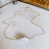 A fun freshwater pearl stick on this classy chain is an easy go to necklace to dress up or down.
