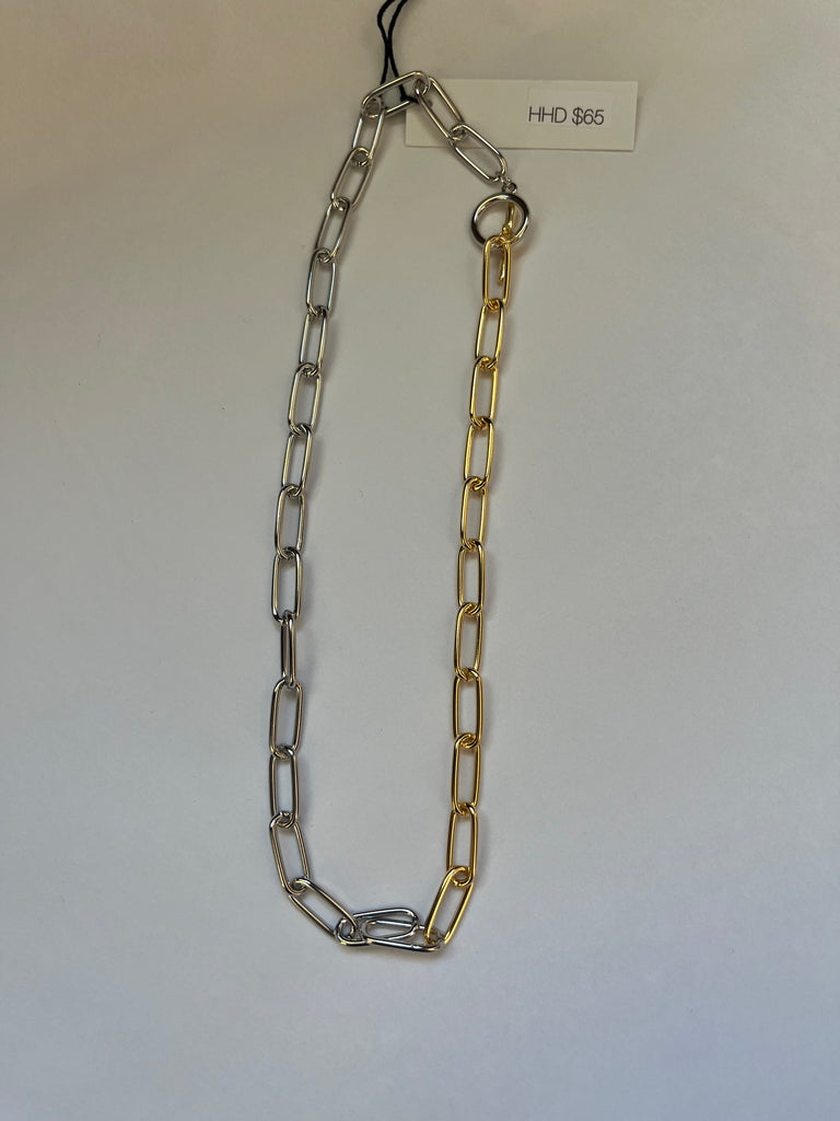 Chunky oval paperclip chain with toggle clasp measures 16.5" from end to end
