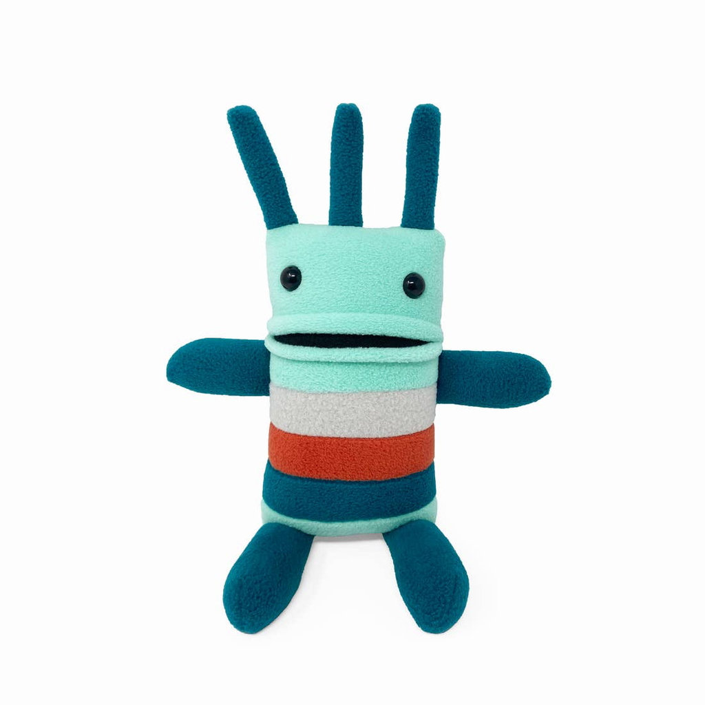 This soft creature rattle is the perfect toy to entertain your little one. It makes a small rattling sound with each shake and is ideal for snuggling and teething. Made from fleece fabric, hypo-allergenic fiberfill, and a commercial-grade rattle. Just like all of our creatures, this rattle can be machine washed and tumble dried on a low setting. Measures approximately 5.5" tall and 2.5" wide.