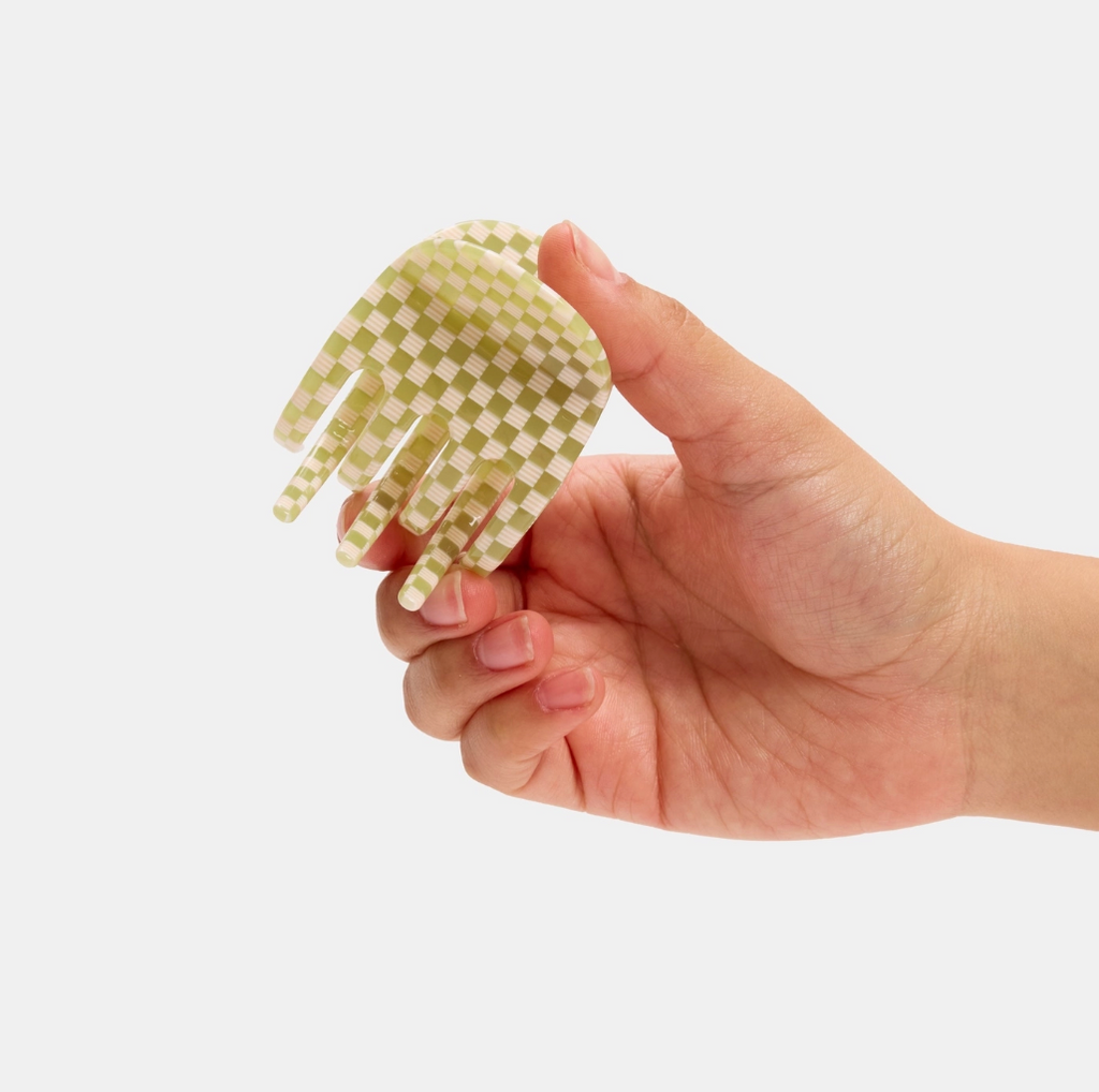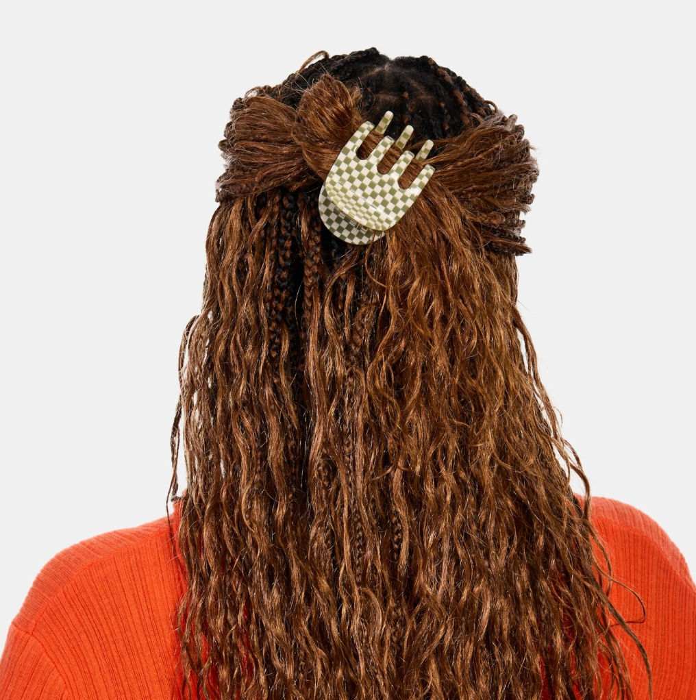 This medium sized claw is uniquely perfect for curly, textured, medium to thick hair. Large teeth give a gentle but firm hold, without crushing curls.