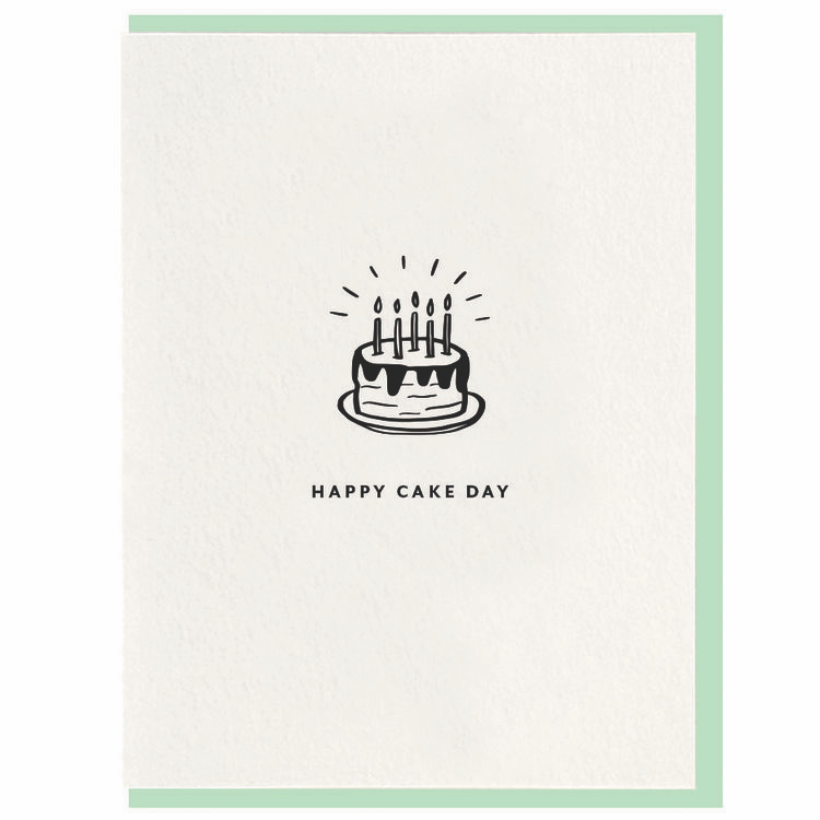 Whether you're looking forward to celebrating another birthday or not; cake is always worth having a party for. Blank inside for your personal message, the card is letterpress printed on plush 100% cotton paper and includes a coordinating mint green envelope.